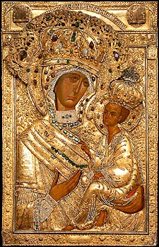 As its first stop on what is projected to be a year-long journey to its original home at the Dormition Monastery in Tikhvin, Russia, the wonder-working icon of the Tikhvin Mother of God will be available for veneration during the 99th annual Pilgrimage to Saint Tikhon Monastery here May 23-26, 2003.