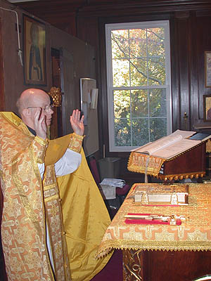 | While incensing the altar table he recites lines which confess the fullness of Christ’s presence, in the grave, in death, in paradise, at the right hand of the Father, “filling all things, Thyself uncircumscribed.” He also recites Psalm 51: “Have mercy on me, O God.” |